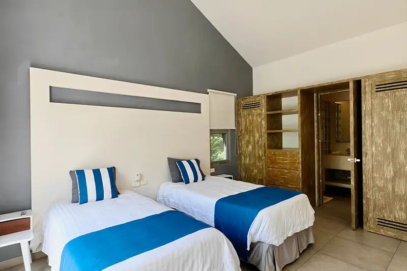 Each room is equipped with full en-suite bathrooms, ceiling fans, air conditioning, large closets and comfortable mattresses. The kitchen is fully equipped with modern appliances, including stove, large fridge/freezer, kitchen utensils, crockery and glassware. In addition, it has custom wooden furniture and a large pool.