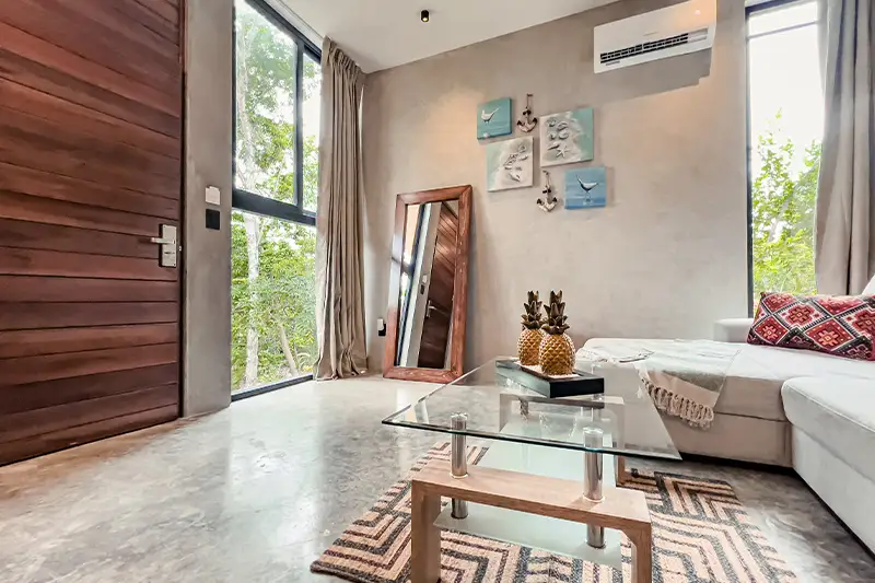 La exclusiva comunidad residencial que ofrece Condos Ja’abin captura en su diseño el misticismo y la esencia del contexto selvático, dando como resultado un espacio que deleita y conquista los sentidos. Destaca principalmente por su concepto rustico y a la vez innovador.