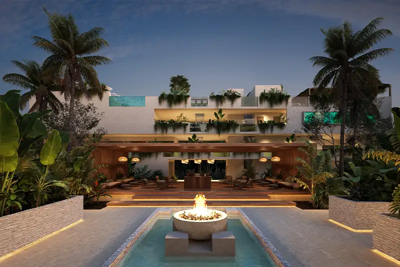Ocean Tulum offers 272 units for sale, with a shopping area, restaurant, attractive amenities, and special attention to green areas and water, creating the sense of living in the Caribbean Sea.